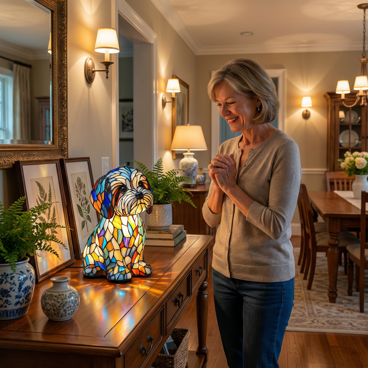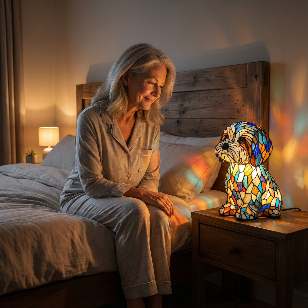"Hay algo muy especial en esta lámpara. Se siente atemporal, cálida y llena de carácter. El vitral refleja la luz de manera preciosa por la noche y hace que mi habitación cobre vida. Es una de esas piezas de las que te enamoras al instante."